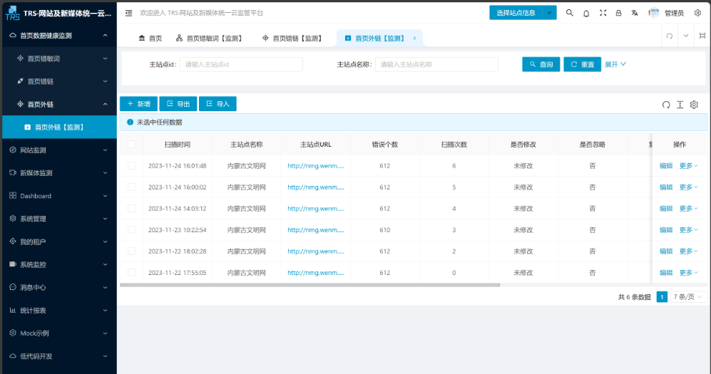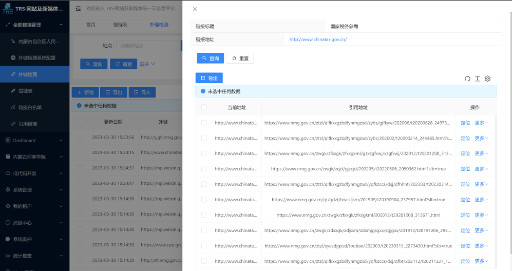 监测政府网站外链的链接是否正确、是否存在敏感词汇,及时发现和记录外链错误或敏感词汇。